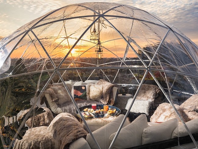 Winter has arrived, and it is time to start planning for cozy outdoor gatherings. Hip Flask Rooftop Bar is now offering you the chance to reserve one of our heated private Igloos located on our Terrace. Inspired by Colorado's snow-capped mountainsides, these warm Igloos are the ideal choice for enjoying crafted cocktails while soaking up magical views.
